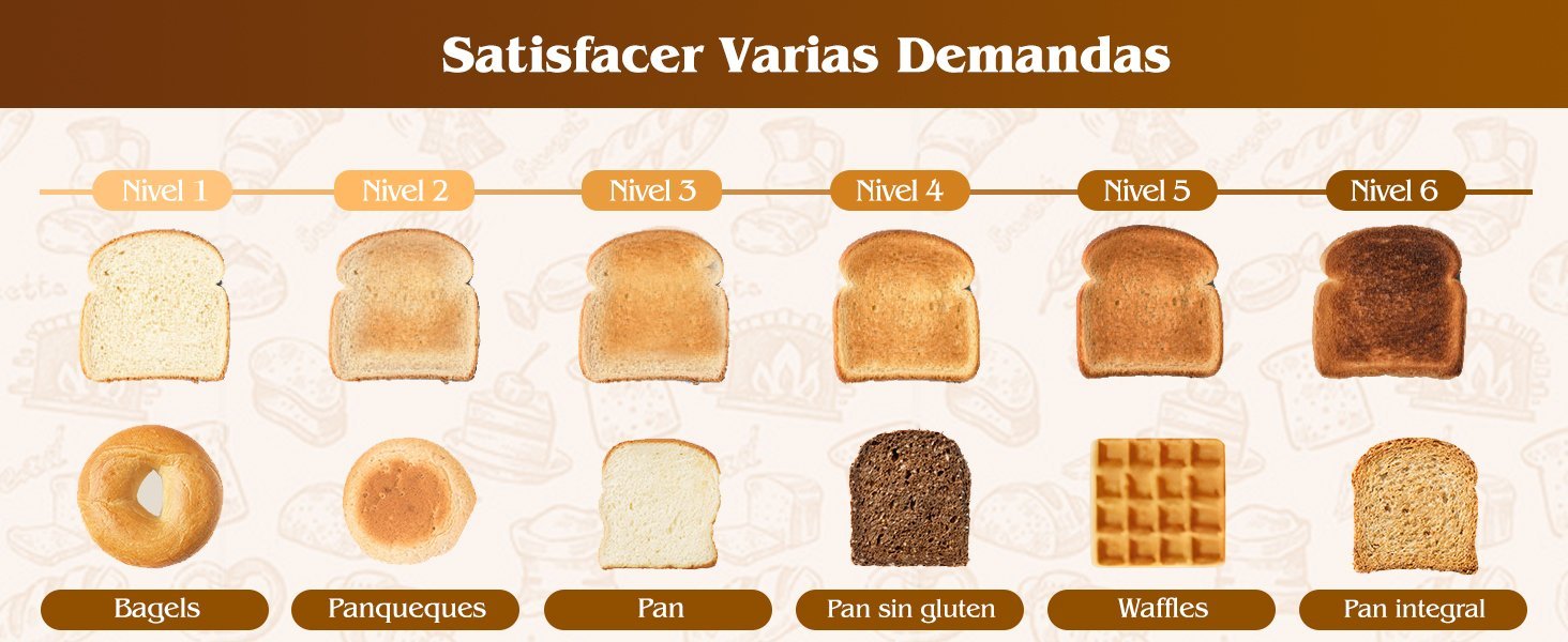 5. 6 niveles de dorado ajustables, desde ligero hasta muy tostado, se adapta a todos los gustos de la casa sin complicaciones.