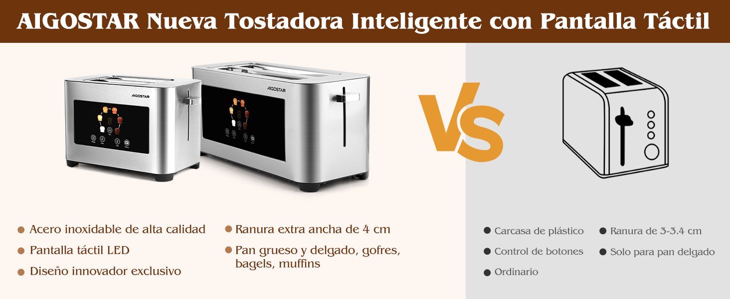 1. La tostadora Aigostar de 4 rebanadas es genial, las ranuras anchas de 4 cm admiten panes gruesos sin problemas y el alineado autom¨¢tico lo hace perfecto!