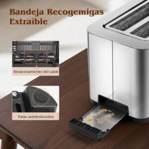 4. Potencia de 1550W, tuesta el pan en segundos, ahorra mucho tiempo en las ma?anas apuradas, perfecta para familias.