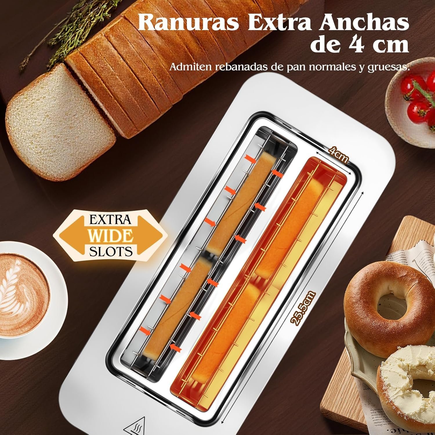 3. 4 cm de ancho en las ranuras, ideal para bagels, waffles congelados y pan casero grueso, muy vers¨¢til para el desayuno.